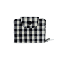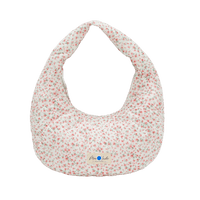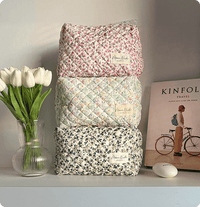The quilted exterior boasts a beautiful floral pattern, complemented by the classy blue gingham interior.